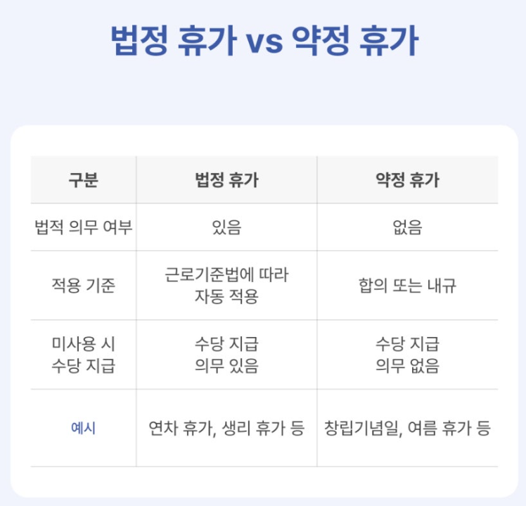 | 유급 여부 | 해당 휴가 기간 동안 임금이 정상 지급되는지(유급), 급여가 차감되는지(무급). | 경제적 손실을 막기 위해 필수 확인. |