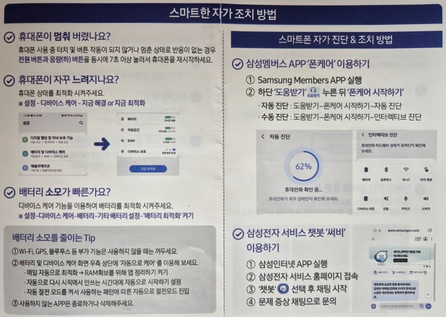 오늘은 삼성 스마트폰 사용자를 위한 자가 진단 및 해결 방법을 정리했습니다.