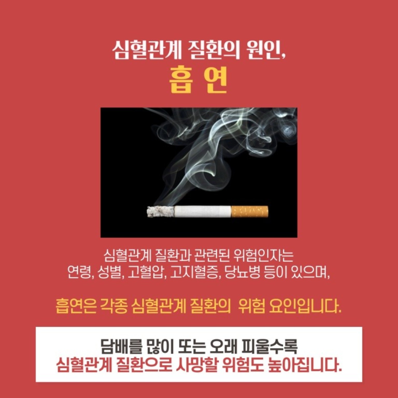 흡연사망자 7명 중 3명은 심혈관질환이 원인, 담배가 타면 우리 몸도 타들어갑니다.
