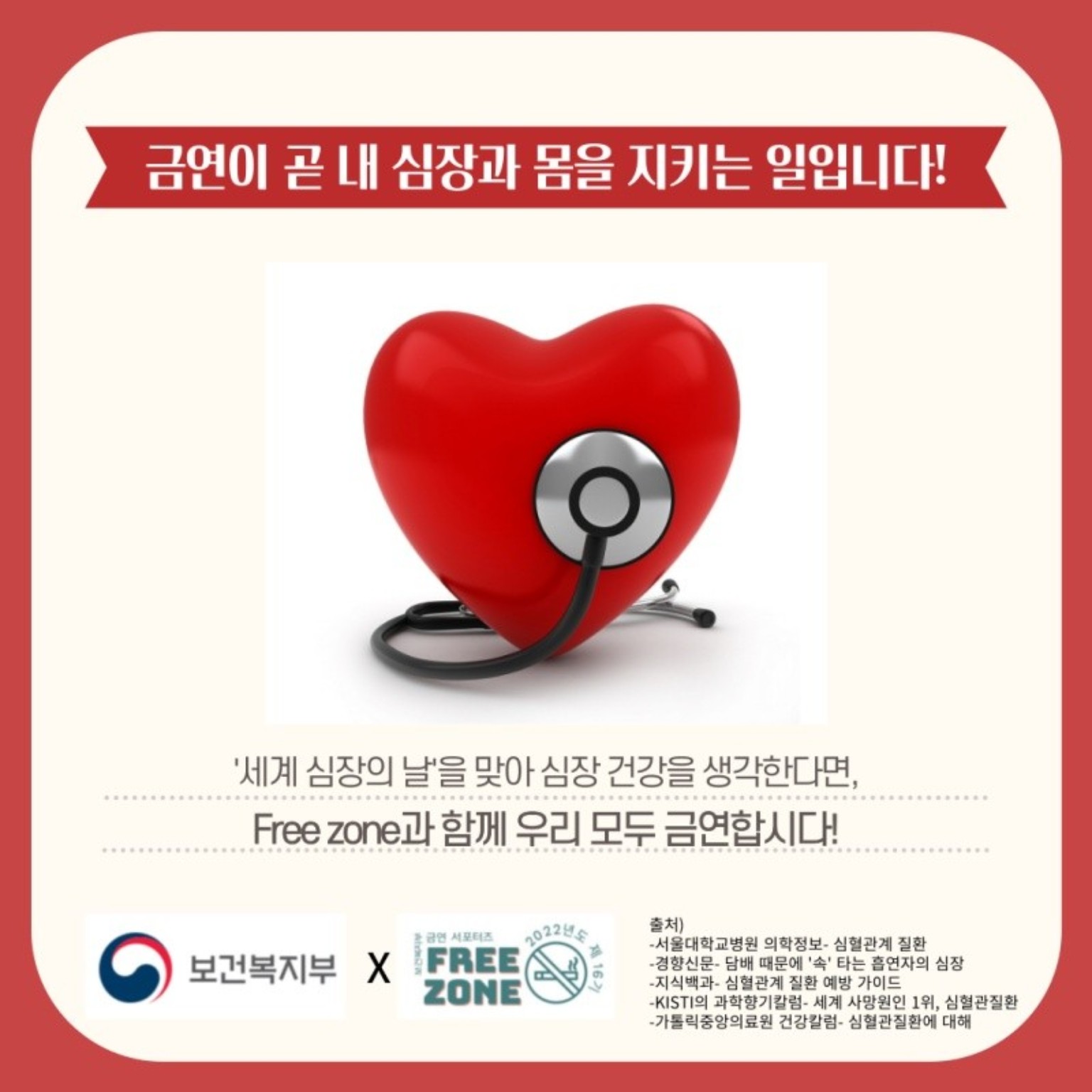 ‘세계 심장의 날’을 맞아 심장 건강을 생각한다면, Free zone과 함께 우리 모두 금연합시다!