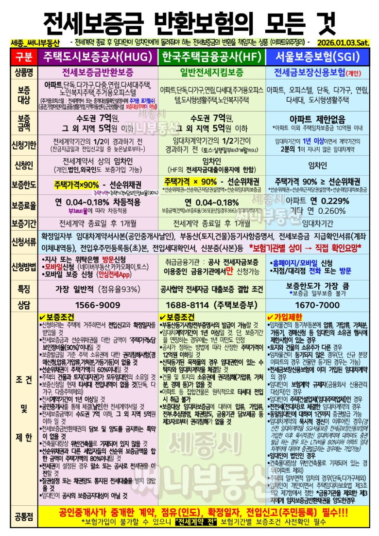 전세보증금 반환보증 보험 완벽 비교 (HUG vs HF vs SGI) 가입 조건 및 한도 정리