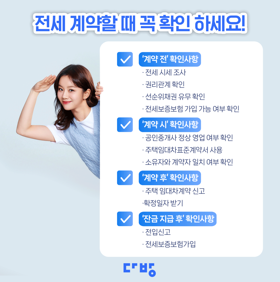 오늘은 전세 사기 걱정 끝! 안심 전세 계약을 위한 필수 체크리스트와 함께, 안전한 방 찾기를 도와주는 부동산 앱 ‘다방’을 활용하는 방법을 소개합니다.