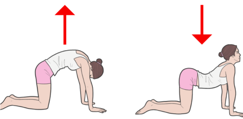 2. 고양이-소 자세 스트레칭