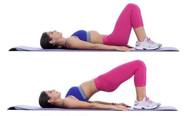 - 방법: 등을 대고 누워 무릎을 세우고 엉덩이를 천천히 들어 올려 5초 유지 후 내리기. 10회 반복