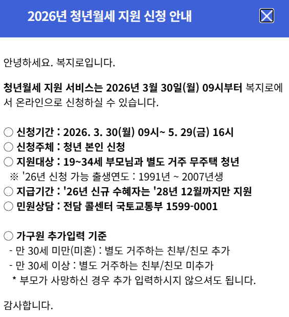2026 청년월세 지원 서비스, 우리들의 든든한 주거 사다리